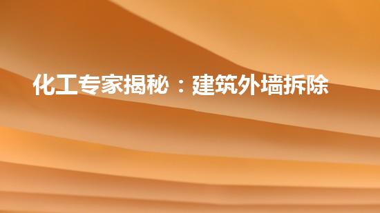 建筑外墙拆除是一项常见的工程,它需要化工专家的参与和支持。本文将从多个方面探讨化工专家揭秘建筑外墙拆除的全过程,包括前置工作、拆除技术、废料处理、环保施工等方面,以期为该行业的从业人员提供实用的指导和建议。