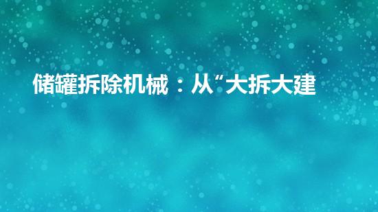 当一座座曾工业血脉的储罐完成历史使命,其拆除经过不再是简单的破坏清运。在安全、环保与效率的三重压力下,储罐拆除机械**正从幕后走向台前,成为决定成败的核心。传统的“人海战术”和粗放式爆破已满足现代工业拆除的要求,一场以智能化、模块化、绿色标志的技术革命,正在这个看似传统的领域悄然发生。我们将深入储罐拆除机械的技术演进、市场驱动与未来图景。