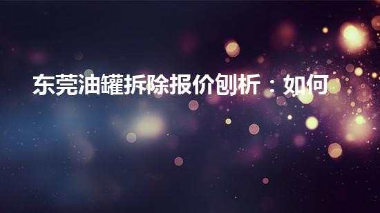 作用东莞油罐拆除报价的核心要素