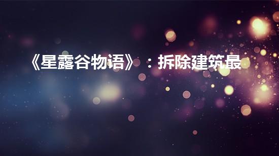 摘要:《星露谷物语》是一款经典的农场经营游戏。然而,随着时间的推移,游戏中的建筑也会变得陈旧,这就需要进行拆除,并重新规划和建造新的建筑。本文将从专业的化工技术角度出发,介绍《星露谷物语》中的拆除建筑...