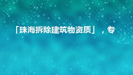 「珠海拆除建筑物资质」,专业实力保障您的拆除工程!