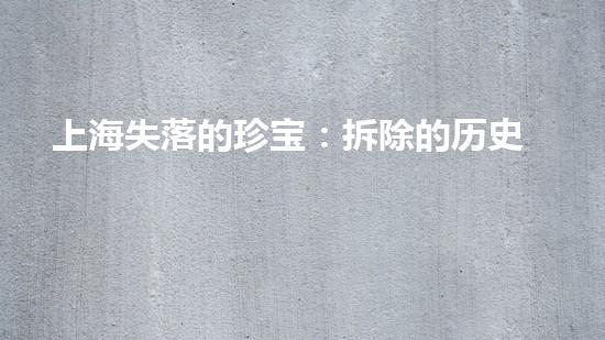 摘要:本文主要介绍上海失落的珍宝——拆除的历史建筑遗憾,引出读者的兴趣,并提供背景信息。在正文方面,本文围绕着拆除行业专家的角色,从四个方面对上海失落的建筑遗憾进行专业深入的阐述,涉及到历史、文化、经...