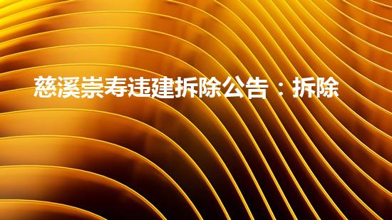 慈溪崇寿违建拆除公告:拆除计划及法律责任须知