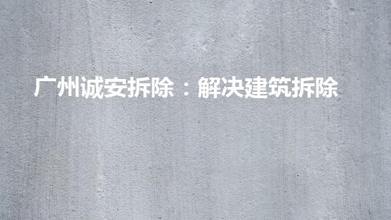广州诚安拆除:解决建筑拆除难题,保护城市环境