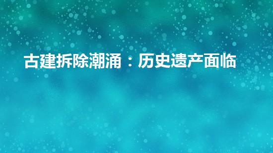 摘要:随着城市化进程不断加快,人们对历史遗产的重视日益提高,在此背景下,古建筑的保护成为一个备受关注的话题。然而,受到经济利益和城市更新的影响,许多具有历史价值的古建筑正在面临被拆除的命运。那么如何平...
