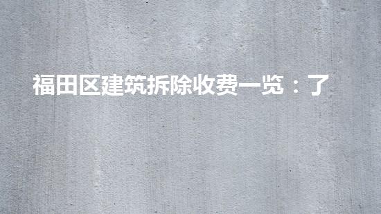 摘要:福田区建筑拆除收费一览:了解最新情况是一个非常重要的话题,这涉及到了消费者以及拆除行业的关键利益。本文将会从专业角度出发,对福田区建筑拆除收费进行深入分析,并探讨这种收费变化的可能性,这对于消费...