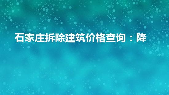 石家庄拆除建筑价格查询:降低拆除成本的好帮手