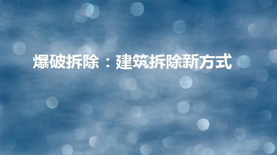 爆破拆除:建筑拆除新方式摘要:随着社会的发展,建筑拆除行业也在不断改进和创新,爆破拆除成为了一种新的方法。本文将介绍爆破拆除在建筑拆除中的应用,以及其优势。同时,也会结合实例分析爆破拆除的操作细节。正...