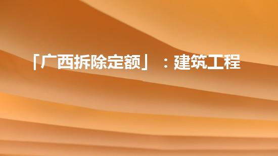 「广西拆除定额」:建筑工程测算标准分析及优化建议