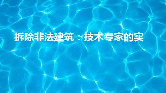 摘要:非法建筑拆除是一个既挑战性又具有重要意义的任务。作为化工技术专家,我曾经亲身参与了多次非法建筑的拆除,累积了丰富的实践经验。本文从拆除前和拆除中两个方面,结合我亲身实践的经验,分享我对于非法建筑...