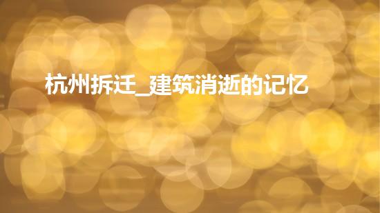 摘要:本文以杭州拆迁:建筑消逝的记忆为话题,介绍了杭州市拆迁所带来的建筑消失和文化遗失,引发了读者的兴趣。此外,本文还提供了一些背景信息,使读者对此有了更好的理解。正文:一、城市发展的原因和当前的局面...