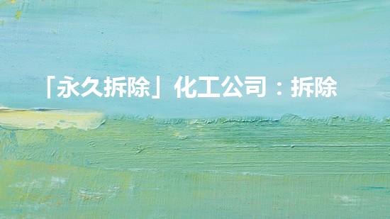 「永久拆除」化工公司:拆除你的污染,铸就永不污染的未来