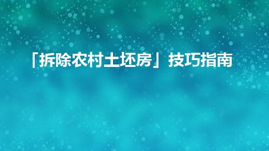 「拆除农村土坯房」技巧指南:高效、安全、环保