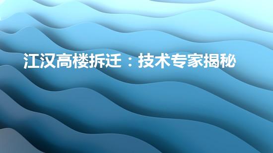 江汉高楼拆迁:技术专家揭秘摘要:随着城市化进程的不断推进,城市中高层建筑的拆除成为社会关注的热点。近日,江汉高楼的拆除工作也引起了广泛关注。作为一名化工技术专家,本文将从多个方面对江汉高楼的拆除工作进...