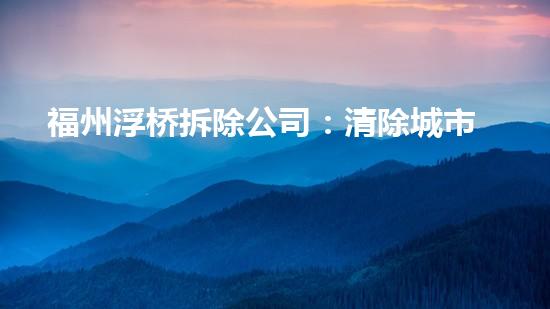 福州浮桥拆除公司:清除城市隐患,打造安全交通新环境