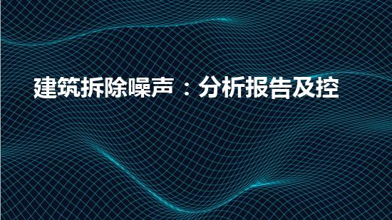 摘要:建筑拆除噪声对于周边环境和居民的影响极大。为了精细化控制建筑拆除噪声,需要制定科学的分析报告及控制方案。本文将从拆除噪声主要影响因素、测量方法、控制技术、拆除过程管理等方面进行深入探讨,以提供更...