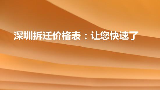 深圳拆迁价格表:让您快速了解房屋拆除费用!