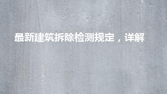 摘要本文主要介绍最新的建筑拆除检测规定,详解注意事项。本文将引出读者的兴趣,并为读者提供背景信息。正文一、 审查拆除计划在拆除建筑物之前,必须评估其对周围环境的影响,包括但不限于噪声、气体、振动和灰尘...
