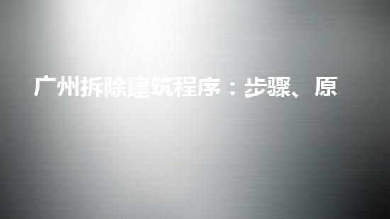 摘要:本文主要介绍了广州拆除建筑程序的步骤、原因与影响。其中包括拆除行业专家的详细阐述,主要介绍了巴洛仕化工厂的拆除过程以及拆除技术的应用情况,以及一些环保问题。正文:一、拆除程序广州拆除建筑的程序一...