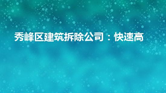 秀峰区建筑拆除公司:快速高效地拆除建筑