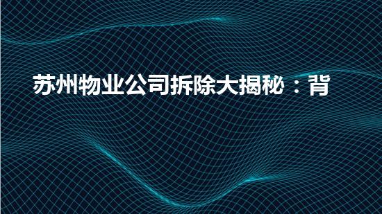 苏州物业公司拆除大揭秘:背后的诡异利益链条
