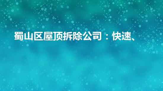 蜀山区屋顶拆除公司:快速、安全、专业