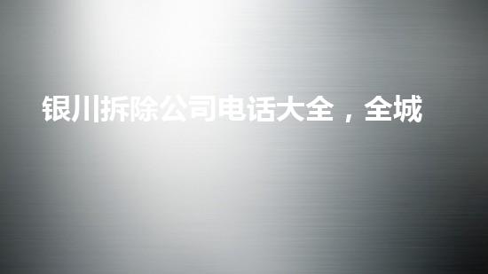 摘要:在银川,拆除公司电话大全是非常必要的。这篇文章将介绍银川拆除公司电话大全,其中包含全城最全的信息,同时也提供了详细查询。如果您需要拆除某个建筑或者设备,本文将为您提供需要的信息。正文:作为拆除行...