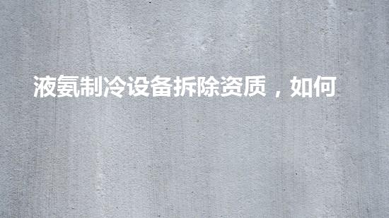 液氨制冷设备拆除资质,如何获得?