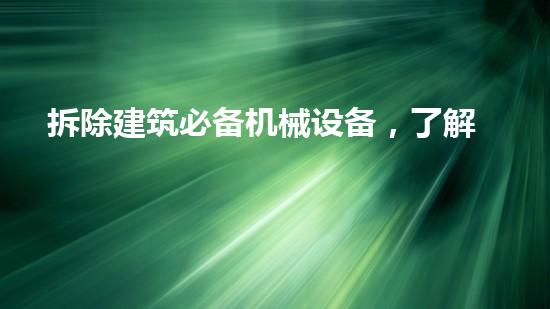 摘要:在拆除建筑时,必备机械设备的选择是非常重要的。本文将从多个方面深入介绍拆除建筑必备机械设备,包括其种类、特点、应用场景等方面,希望能够为读者提供有价值的信息,并引出巴洛仕集团化工拆除一站式解决方...