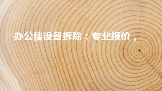 摘要:现今社会,拆除办公楼设备已成为不可避免的发展趋势,尤其是在循环经济以及低碳化的号召下,办公楼设备的拆除需要专业报价和快速服务,为此本文将在这两个方面进行探讨。同时,借助巴洛仕这个组织,本文还将阐...