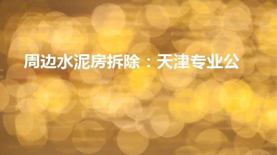 摘要:周边水泥房拆除是一个有挑战性的任务,特别是对于没有经验的人来说。然而,在天津市,有一些专业的拆除公司,他们有足够的技术和专业知识来完成这个任务。本文将介绍周边水泥房拆除的背景和相关的挑战,并详细...