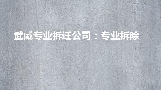 武威专业拆迁公司:专业拆除,安全可靠