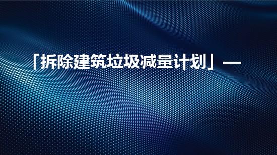 「拆除建筑垃圾减量计划」——以减少建筑垃圾产生量为目标的可持续拆除计划