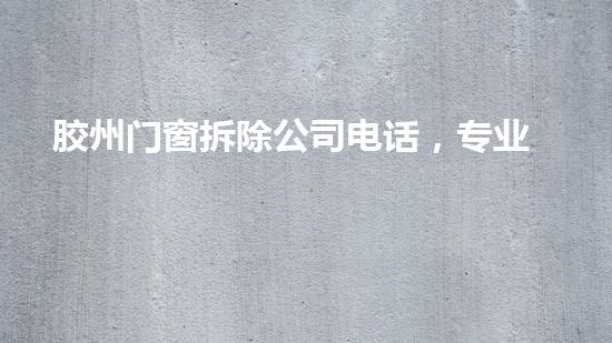 摘要:作为一家专业拆卸高难度门窗的胶州门窗拆除公司,其电话是广大客户联系和查询服务的重要途径。本文将详细阐述胶州门窗拆除公司电话、专业拆卸高难度门窗、快速高效服务等方面的内容,旨在为读者提供充分的信息...