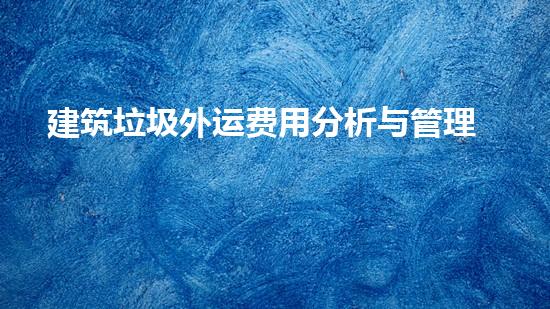 建筑垃圾外运费用分析与管理