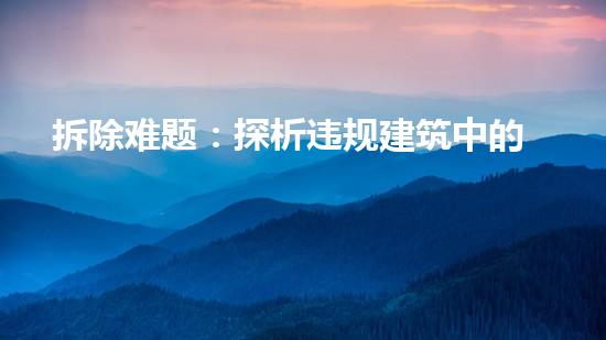 摘要:本篇文章将探讨拆除难题中违规建筑中的禁拆因素。首先,文章引出了此问题的背景信息,并提供了相关的基础知识。其次,根据作者所扮演的专家角色,文章将从四个方面进行详细的阐述。这些方面包括地面结构、建筑...