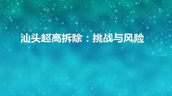 摘要:本文探讨了汕头超高拆除的挑战和风险,并介绍了巴洛仕集团在化工厂拆除领域中采用的先进技术。本文将从以下4个方面对超高拆除挑战和风险进行详细阐述:工程规模、安全风险、环保压力、拆除技术。正文:一、工...