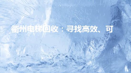 衢州电梯回收:寻找高效、可靠的拆除公司?