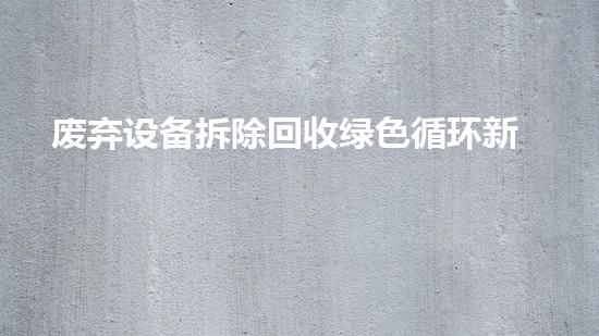 废弃设备拆除回收 绿色循环新篇章伴随我国经济的快速进步,废弃设备的拆除回收已成为环保事业的一个主要环节。如何效率高、环保地进行废弃设备拆除回收,不但关系到资源的再利用,也作用着社会整体的可持续进步!在...