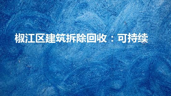 椒江区建筑拆除回收:可持续利用旧资源