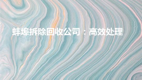 摘要:本文将介绍蚌埠拆除回收公司,该公司以高效处理废旧楼层、环保倡导新生活为中心。通过引出读者的兴趣并提供背景信息,本文将对该公司进行深入分析,探究其优势和特点。正文:1. 公司介绍蚌埠拆除回收公司是...