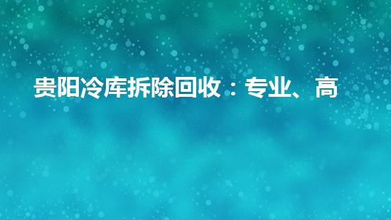 贵阳冷库拆除回收:专业、高效的冷库设备处理服务