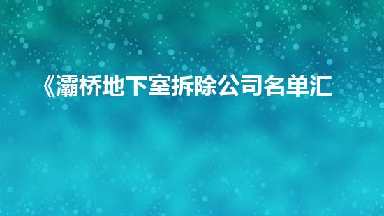 《灞桥地下室拆除公司名单汇总!》