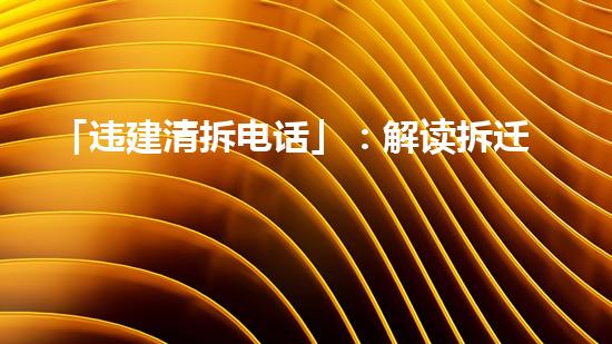 「违建清拆电话」:解读拆迁热线,拆除违章建筑,让城市更美好。