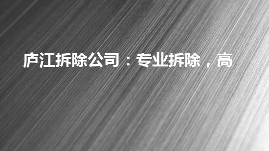 摘要:庐江拆除公司是一家致力于提供专业拆除和高效服务的企业。本文将详细呈现该公司的专业能力、技术应用、环保施工、安全管理等方面,为读者展示其在拆除行业中的优势和特点。正文:一、专业能力庐江拆除公司是一...