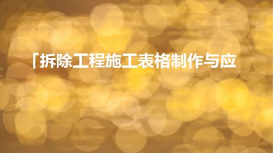 摘要:本篇文章涉及了「拆除工程施工表格制作与应用指南」,主要介绍了巴洛仕集团化工厂拆除过程中的各种应用技术和表格制作指南,包括清洗置换、设备回收、污泥减量化、废液处理、油罐拆除、危废处理、环保施工等方...