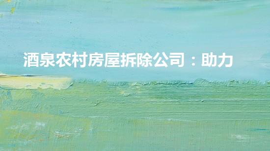 一、 酒泉农村房屋拆除公司为乡村振兴做出的贡献