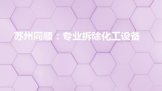 本篇文章介绍苏州同顺,在化工设备拆除领域的专业性,安全高效和环保可持续方面所取得的成就,在读者的背景信息中提出了苏州同顺作为化工设备拆除领域的领军者,引发读者的兴趣。本文以专家的角度,从多个方面对苏州同顺进行深入阐述,为读者呈现该公司的专业化、专业性、安全性等优势。