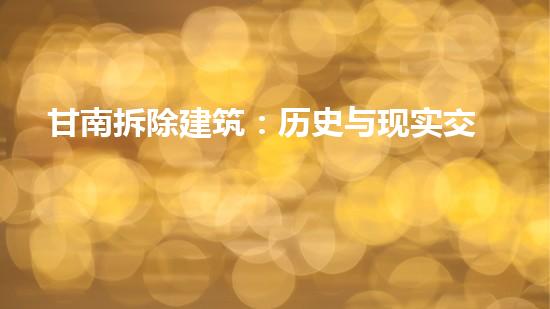 甘南自古以来是一个政治、经济和文化中心,留下了大量具有历史、文化价值的建筑。但随着城市化进程的加快和经济的快速发展,越来越多的老旧建筑已经无法适应现代城市的需求,必须进行拆除。这些建筑的拆除不仅是简单的爆破和拆除,更是历史和现实的交织,需要综合考虑文化、环境、经济等多方面因素。例如,拆除甘南古城墙时,需要在保护文化遗产的前提下,综合考虑城市规划和交通便利等现实需求,因此,在拆除行为中,需要特别注意如何保护文化和历史遗产。