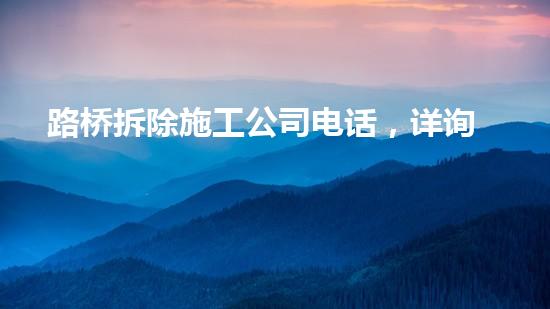 路桥拆除施工是一个非常专业的领域,需要专业的技术来保证顺利进行。如何保证工作的质量和安全性是当务之急。在这种情况下,拆除公司的电话号码显得尤为重要。本文将多个方面对路桥拆除施工公司电话进行详细的阐述,以帮助读者更好地了解这个专业领域。